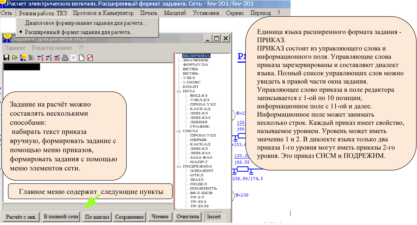 Расширенный формат задания для расчёта использует язык приказов, похожий на язык реализованный в ТКЗ-3000.